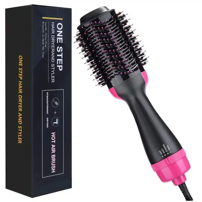 All-in-One Hot Air Styling Brush: Functions as a hair dryer, volumizer, straightening brush, and curling tool—a versatile 2‑in‑1 device.