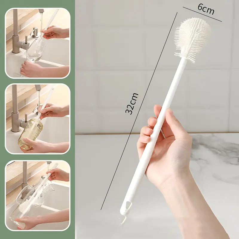 A slender, extended handle helps reach deep into bottles, vases, baby bottles, and narrow containers for efficient cleaning.